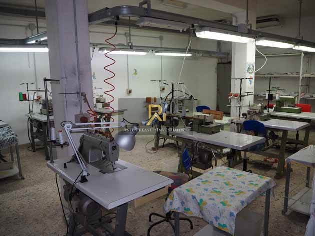 laboratorio per arti e mestieri al piano sottostrada ed esteso circa metri quadrati quattrocento (mq.400), confinante da tre lati con intercapedine e da un lato con scivola di accesso.