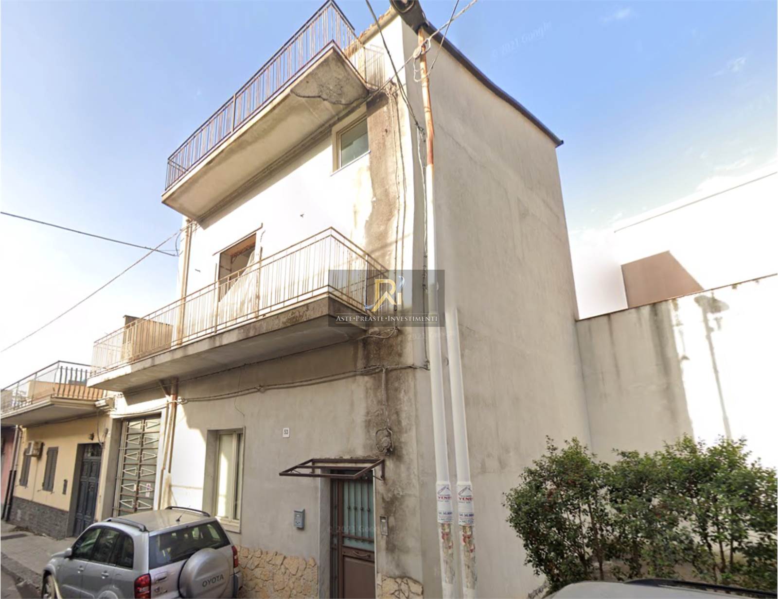 Piena proprietà del palazzetto indipendente sito nella frazione di aci platani del comune di acireale, con accesso da via botteghelle n.53 composto da un piano terra composto da tre vani ed accessori (cucina, ingresso, corridoio, ripostiglio , w.c. e due cortili interni) , oltre un garage, da un primo piano composto da un grande vano più accessori (cucin, disimpegno, e w.c.) , sprovvisto di rifiniture, e due terrazze a livello ed un lastrico solare. ____________________________________________________