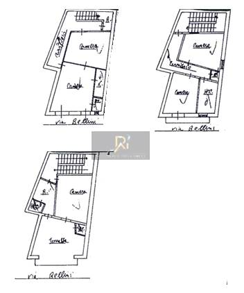 Lotto unico diritto di proprietà su appartamento sito in Adrano, via Bellini n. 52-54 posto al piano terra, primo e secondo, composto da cinque vani oltre accessori. L'immobile è composto da cucinino, bagno, corridoio e vano scala al piano terra; al piano primo sono ubicati corridoio, cabina armadio, bagno, due camere e balcone; al piano secondo sono presenti disimpegno, camera, cucina, terrazzo coperto e balcone.