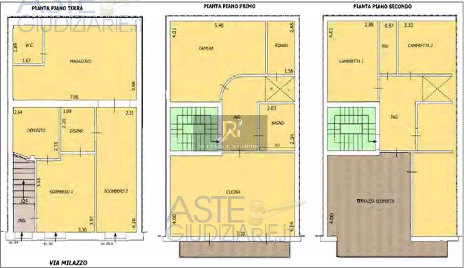 L'intero piano terra comprende quattro vani comunicanti e corredati di due aperture esterne, sono presenti due locali di sgombero e a seguire un vano disimpegno e un vano deposito sottoscala e nella parte retrostante un ampio vano interno, utilizzato a magazzino con angolo forno a legna e cucina rustica e con annesso piccolo bagno per una superficie utile di mq 78,45. Superficie 197 mq, consistenza 9,5 vani.