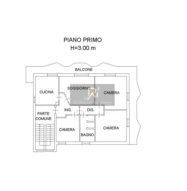 appartamento al piano primo costituito da ingresso, soggiorno, cucina, tre camere, bagno, con annesso balcone. sviluppa una superficie lorda complessiva di circa 146 mq. oltre autorimessa al piano seminterrato.