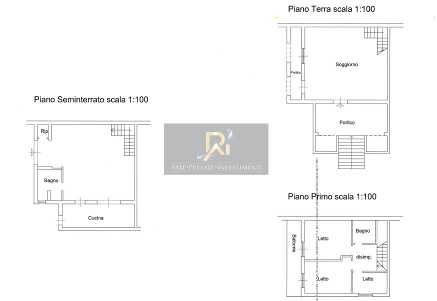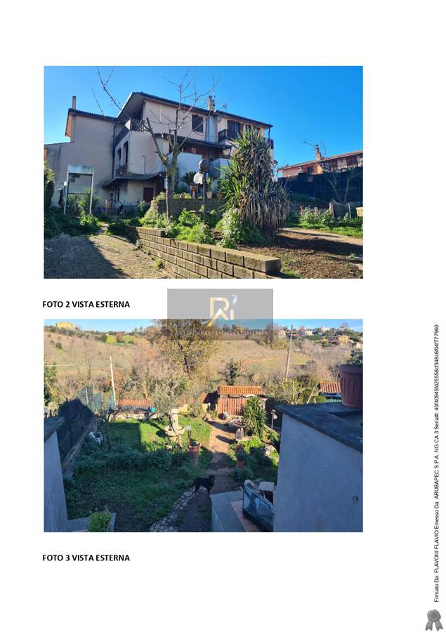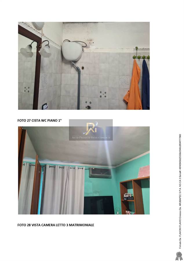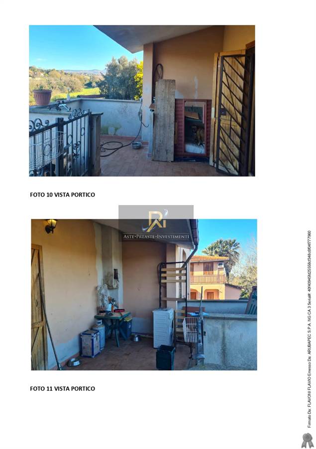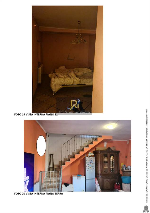 Il fabbricato residenziale, oggetto di procedura, fa parte di un'immobile di maggior consistenza a tipologia quadrifamiliare, è composto da piano seminterrato, terra e primo tutti con destinazione residenziale. Al piano seminterrato, non comunicante con i restanti due piani, abbiamo un soggiorno con angolo cottura, tre camere, un bagno e ripostiglio; il piano terra rialzato è composto da soggiorno con angolo cottura, due portici e terrazzo, per mezzo di scala interna si accede al piano primo dove sono ubicate tre camere un bagno e balcone.