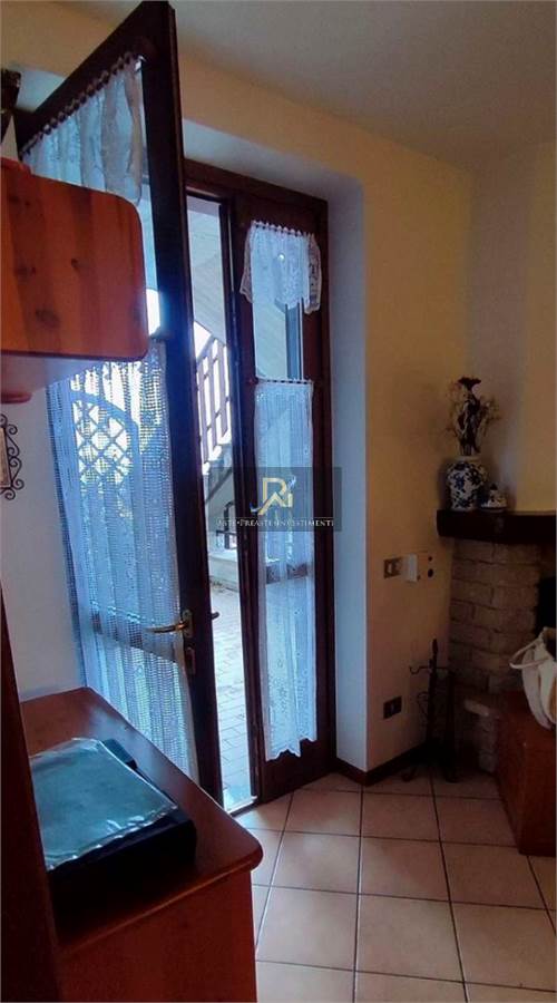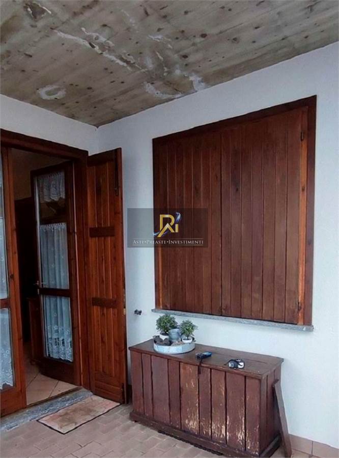 Appartamento al piano rialzato, ad uso prevalentemente di seconda casa, caratterizzato da una vista panoramica sulla valle, costituito da un soggiorno cucina con angolo cottura e camino, un disimpegno di collegamento alla camera, al bagno e ad un ripostiglio, oltre al cortile esterno esclusivo sul retro casa. i due "giardini esclusivi" sono di difficile accesso e non facilmente e non facilmente utilizzabili per l'eccessiva pendenza del terreno. al piano seminterrato si trovano la cantina e l'autorimessa.