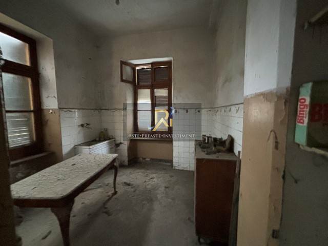 Al piano terra (1° f.t.), alloggio composto da: ingresso, cucinino, disimpegno, tre camere, bagno e balcone con affaccio su cortile comune a due lati, al piano interrato cantina.