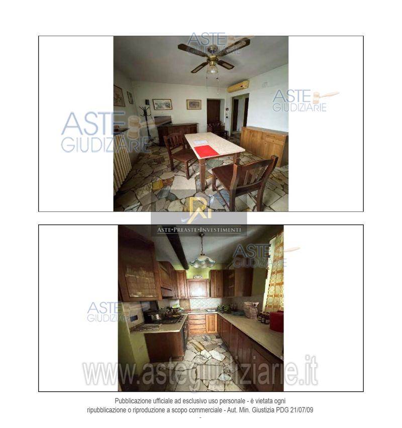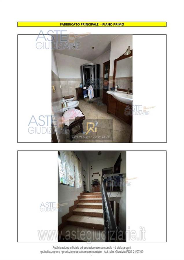 Piena proprietà di appartamento al piano terra e primo di circa 417 mq. Consistenza 7,5 vani. Composto da locale di sgombero, cucina, disimpegno, bagno, ripostiglio, camera, soggiorno al piano terra. Locale di sgombero, bagno, disimpegno con vano scala, tre camere. Relativi fabbricati accessori in parte ad un piano fuori terra ed in parte a due piani fuori terra.
