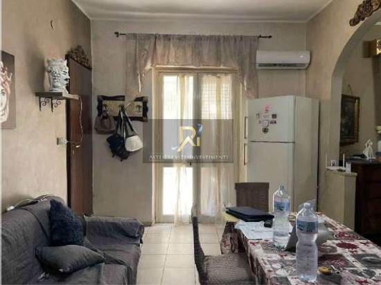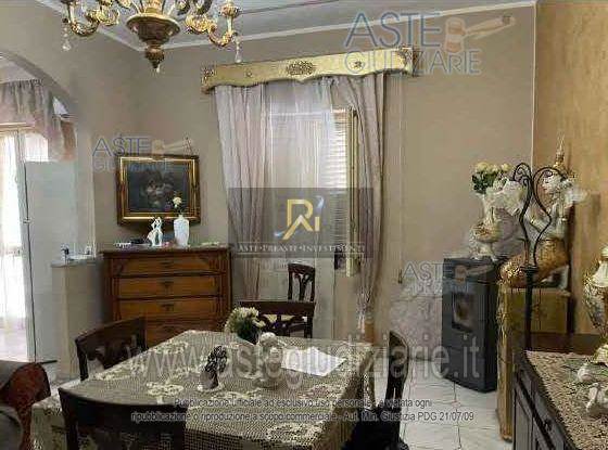 Piena proprietà di appartamento al piano terra, primo e secondo di circa 126 mq. Consistenza 4 vani. Composta al piano terra da soggiorno, cucina e bagno; al piano primo sono presenti due camere e un disimpegno; infine al piano secondo una terrazza coperta allo stato grezzo, adibita a deposito.