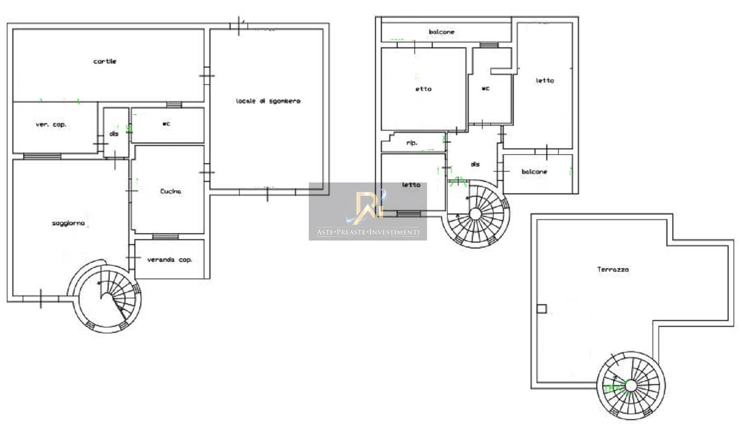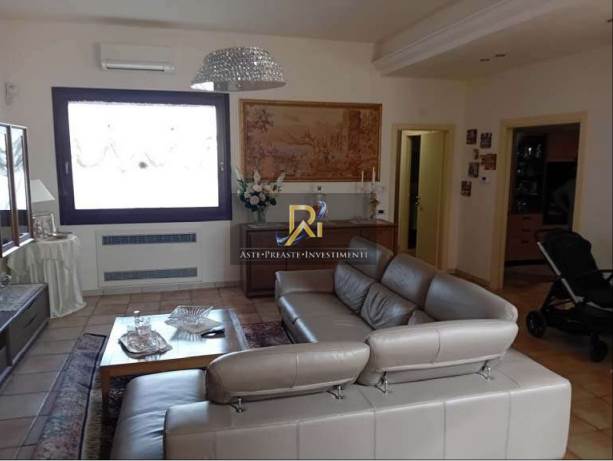Piena proprietà di appartamento al piano terra, primo e secondo di circa 243 mq. Consistenza: 10 vani. Il piano terra comprende: soggiorno, cucina, bagno, disimpegno, locale di sgombero, due verande coperte, un cortile ed un'area di pertinenza. Il piano primo comprende: tre camere da letto, bagno, disimpegno, ripostiglio e due balconi. Il piano secondo comprende: il vano scala e il terrazzo.