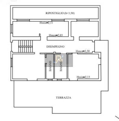 disimpegno, locali accessori, quattro camere, due bagni e ripostiglio, con terrazzo panoramico, veranda, magazzino e corte esterna pertinenziale.