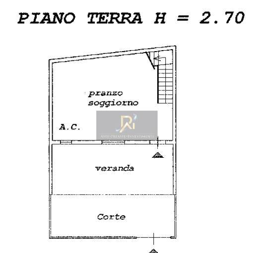 Abitazione indipendente ai piani terra e primo. Piano terra composto da ampio spazio giorno-cucina di circa 55 mq e un sottoscala di 3mq; - piano primo con tre camere da letto e un bagno. La copertura è a una falda (altezza da 2,50 m a 3,70 m); L’immobile, a pianta rettangolare, è costituito da circa 60 mq piano terra + 60 mq primo piano, + 24 mq di veranda e 25 mq di corte esterna.