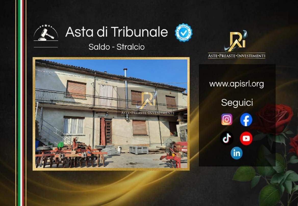 compendio immobiliare rurale, in scarso stato di manutenzione e conservazione, costituito da una corte composta da un’abitazione su due livelli oltre cantina interrata e da una serie di fabbricati rurali. la superficie lorda del fabbricato residenziale, balcone e cantina esclusi, è di mq. 208 circa, mentre quella dei rustici, compresi casseri e soprastanti, è di mq. 760 circa.