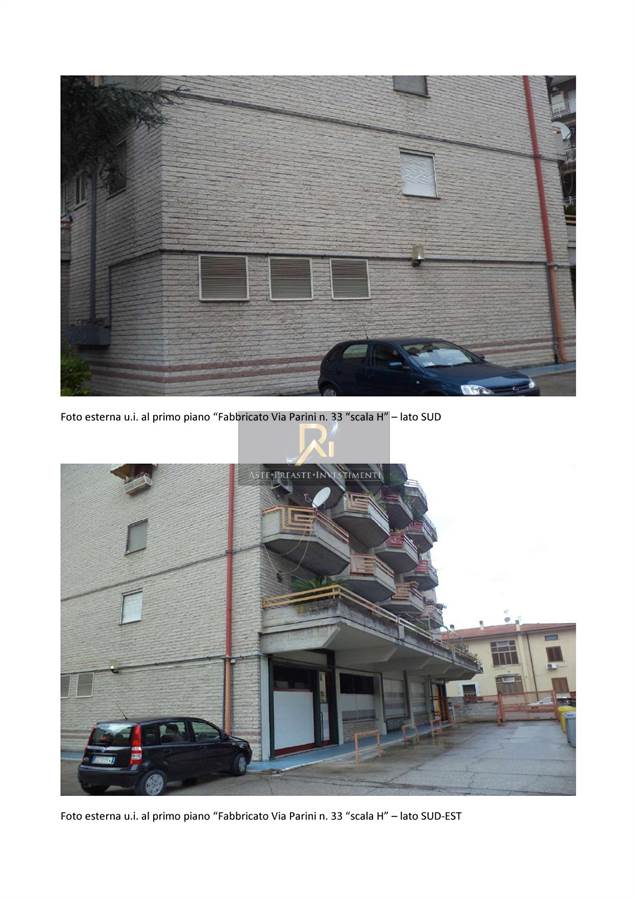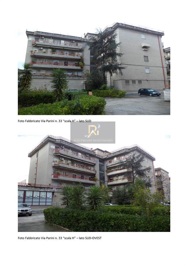 Appartamento scala H, interno 2, piano 1; identificato al Catasto Fabbricati al fg. 86, part. 199, sub. 64, Categoria A2. Appartamento di civile abitazione, posto al primo piano del fabbricato sito in Cassino, Via Giuseppe Parini n. 33, contraddistinto con il numero 2 della scala H. L’appartamento è composto da ingresso, cucina-pranzo, disimpegni, bagno e n. 3 camere. Il fabbricato è ubicato nel centro del Comune di Cassino, in zona ad alta densità abitativa e dotata di tutti i servizi necessari (negozi di ogni genere, scuole, uffici, parcheggi, ecc.). Il complesso immobiliare di cui fa parte il fabbricato “scala H” risulta costituito da un piano terra con destinazione commerciale e da n. 4 piani in elevazione adibiti a civile abitazione, con copertura a terrazzo.