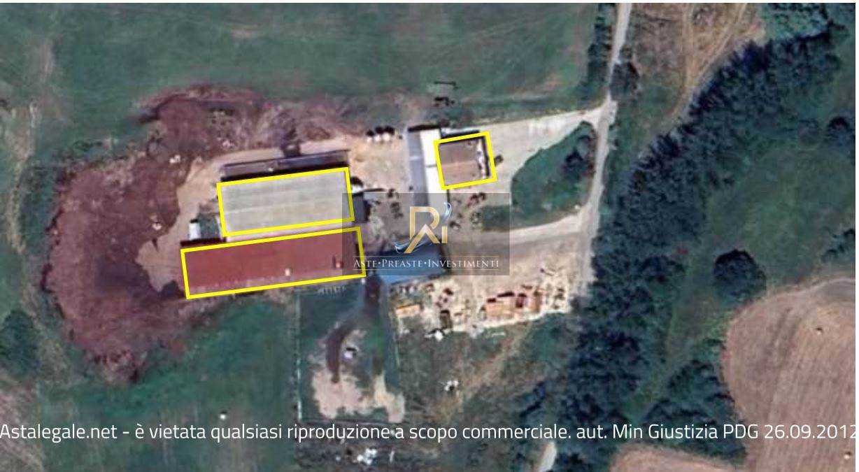 Appartamento, con annesso sottotetto, di circa mq.150. Il disimpegno collega la zona a giorno con la cucina e la sala alla zona notte con tre camere ed un bagno. B) Autorimessa con corte di pertinenza, posta al piano terra. C) Stalla a stabulazione libera (lettiera permanente) di dimensioni circa di ml.39,60 x 17,00, realizzata ad un unico piano con altezza max di mt.5,75. D) Terreni agricoli di asservimento.