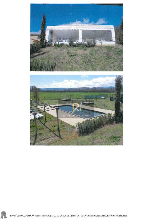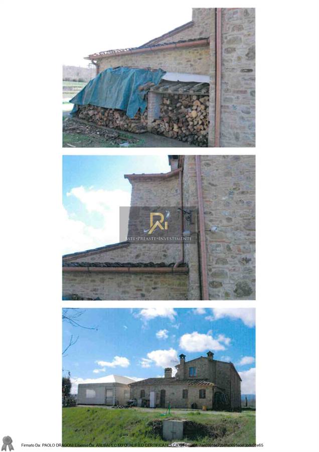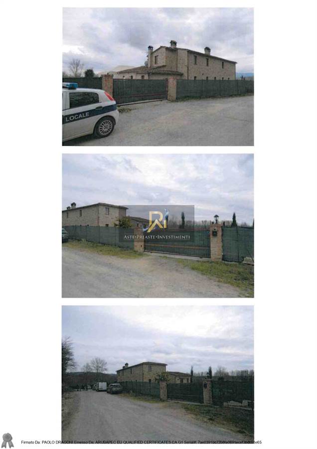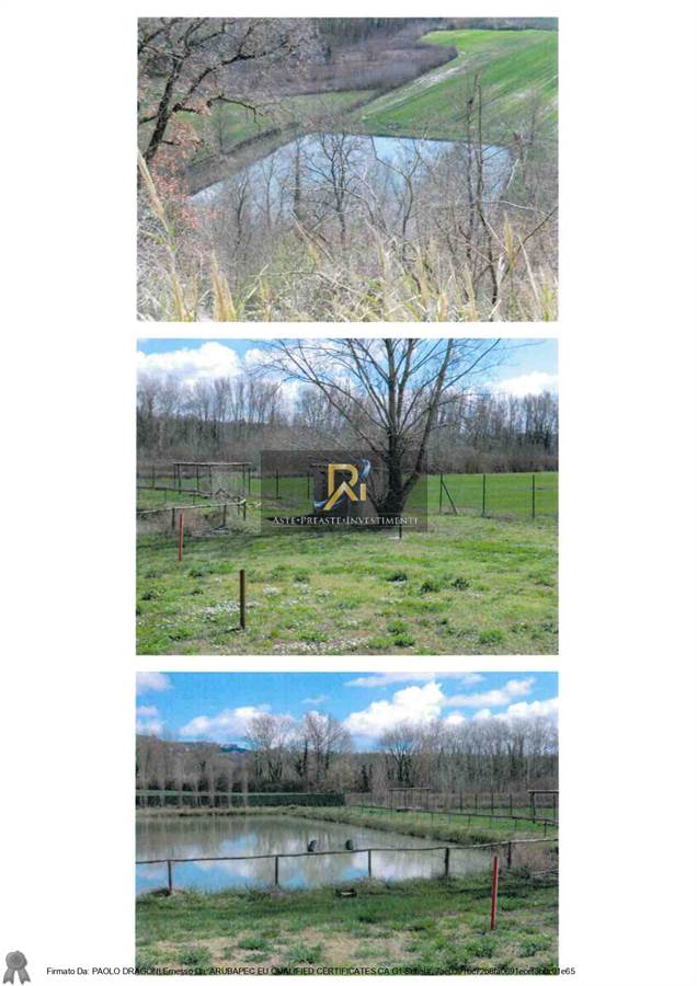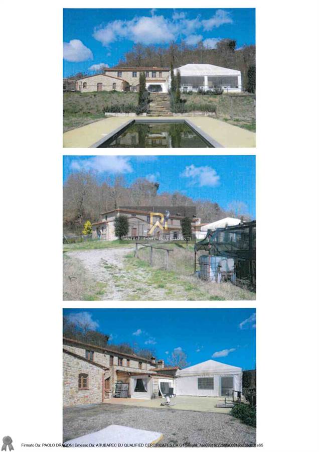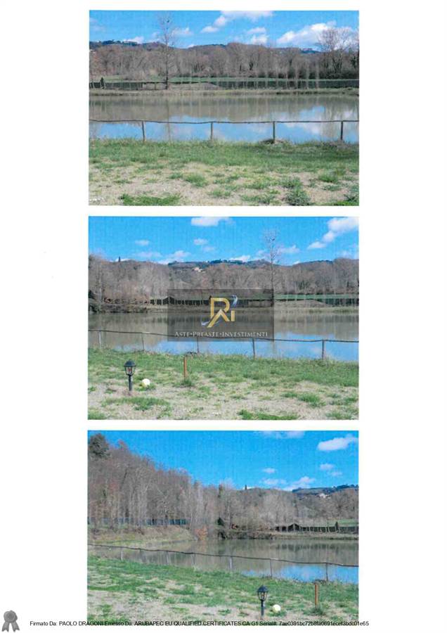 Cespite 1) Compendio immobiliare costituito da fabbricato con annessa area di corte esclusiva e pertinenziale, destinato ad attività agrituristica e ricettiva per la salute del corpo, che ricomprende entro la corte strettamente pertinenziale degli annessi, una piscina ed un laghetto; Cespite 2) terreni agricoli a giacitura collinare dislocati in due zone, ricomprendenti in parte un laghetto, di qualità catastale varia.