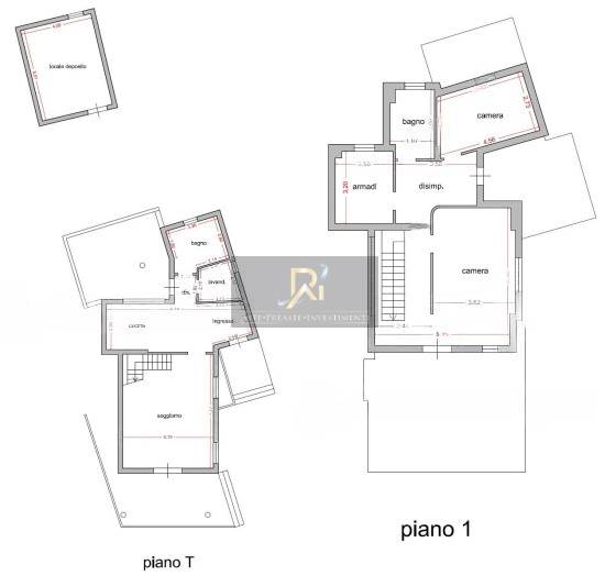 Appartamento in villino che si sviluppa su due livelli con un locale deposito collocato nell'area di pertinenza e due stacchi di terreno agricolo. In seguito ai lavori di ristrutturazione iniziati, ad oggi l'immobile è costituito da ingresso, cucina, ripostiglio, bagno, soggiorno e verande esterne al piano terra; disimpegno, ripostiglio, tre camere, bagno, un terrazzo e due ampi balconi al piano primo, oltre locale deposito costituito da un unico vano.