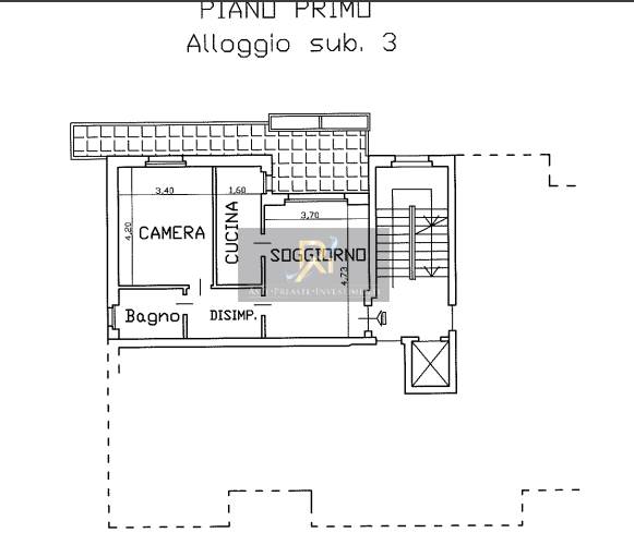 Appartamento al piano primo composto da ingresso soggiorno, cucina, camera, bagno ampio terrazzo e locale camtina
