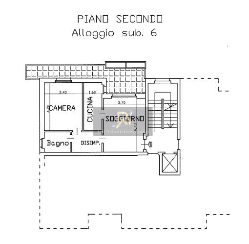 Appartamento al piano secondo composto da ingresso soggiorno, cucina, camera, bagno ampio terrazzo e locale camtina