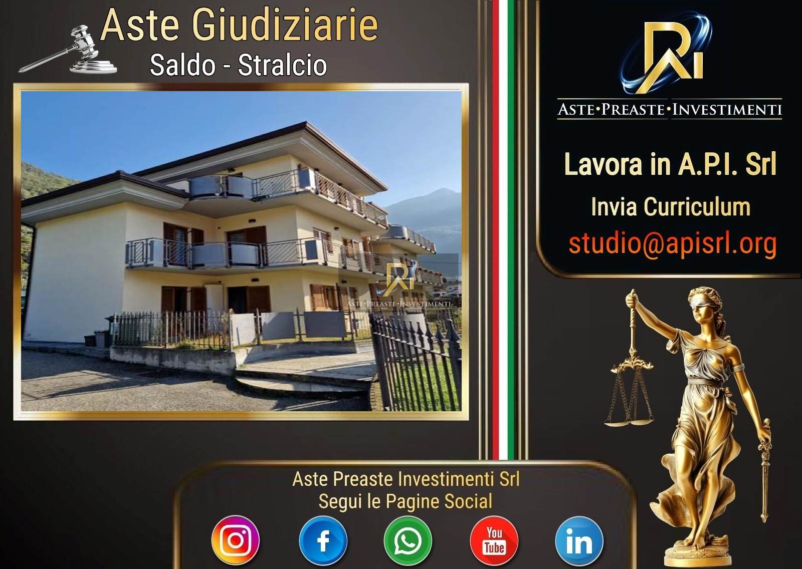Trattasi di vendita giudiziaria con assistenza di A.P.I. Srl, studio di riferimento per consulenza e gestione di acquisto in AstaGiudiziaria e Pre-Asta.