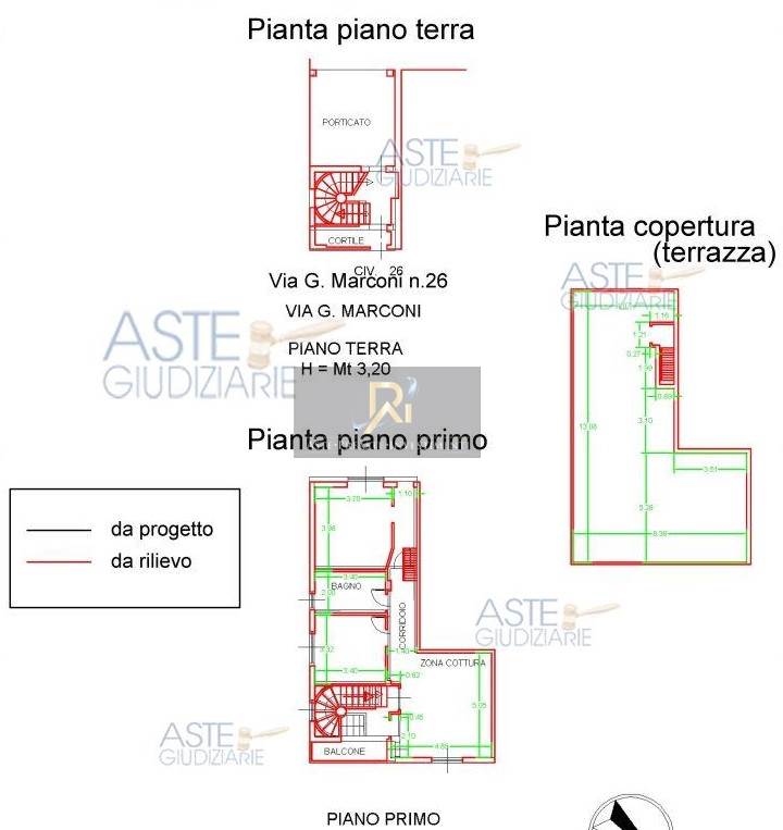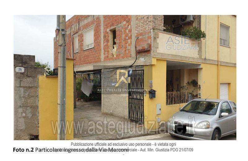Fabbricato per civile abitazione su due livelli, oltre piano di copertura a terrazza praticabile, con accesso dalla Via Guglielmo Marconi n.26, composto da cortile al piano terra; al piano primo da soggiorno con angolo cottura, due camere, bagno e un disimpegno con vano scala di accesso alla terrazza al piano sovrastante.