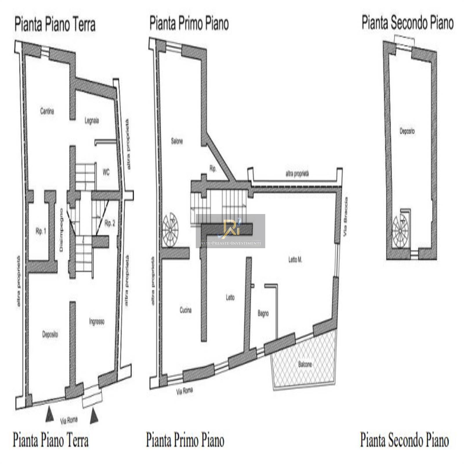 Fabbricato ubicato su tre piani fuori terra. Il piano terra è composto da ingresso, locale deposito, cantina, ripostiglio e legnaia. Il primo piano è composto da salone, cucina, due camere da letto ed un bagno. Il secondo piano è composto da deposito.