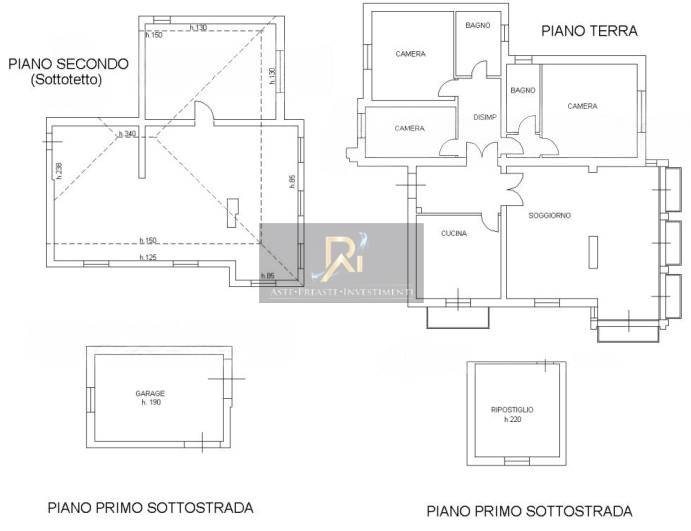 Piena proprietà di: 1. ripostiglio, posto al seminterrato per una superficie totale di circa 18 mq. 2. garage posto al seminterrato per una superficie totale di circa 26 mq. 3. abitazione posta al piano terra di un edificio plurifamiliare con ingresso comune con portico e scala interna di accesso alle altre unita immobiliari, risulta composto in unico piano da: ingresso, sala da pranzo, cucina, ampio soggiorno, camera matrimoniale e due camere da letto, due bagni. per una superficie totale di circa 200 mq.