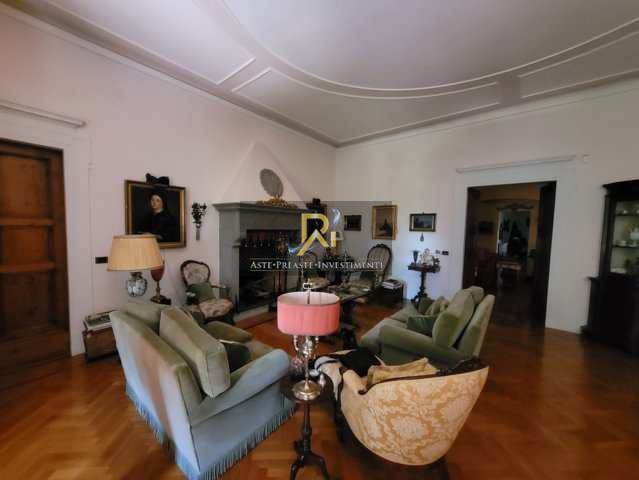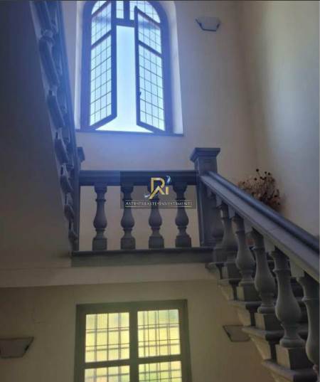 Piena proprietà di appartamento al piano seminterrato e primo di circa 221 mq. Consistenza: 7 vani. Composto da ingresso/soggiorno con camino, salone anch’esso dotato di camino da cui si accede a una porzione di terrazza, cucina, due camere, guardaroba con palco morto, disimpegni, lavanderia, dispensa, due bagni, ripostiglio e cantina al piano interrato.