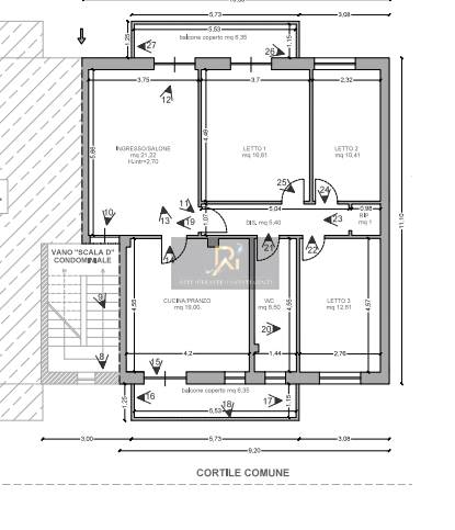 Appartamento posto al terzo piano composto da un ingresso, soggiorno, cucina, tre camere, bagno e due balconi