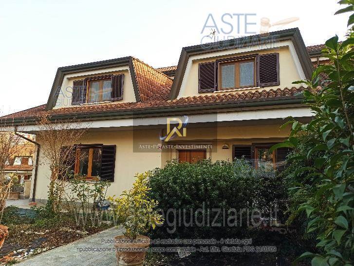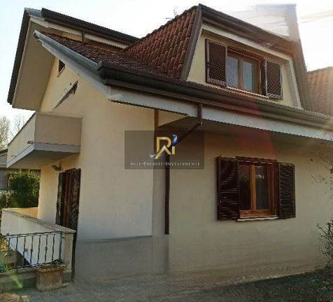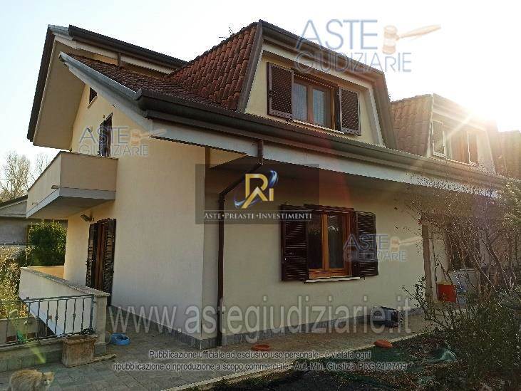 Porzione di villa bifamiliare su quattro livelli composta da soggiorno con angolo cottura, due vani, bagno e garage al piano seminterrato, da cucina, soggiorno, bagno e ripostiglio al piano terra, quattro camere, due bagni e balcone al piano primo, da un vano al piano secondo.