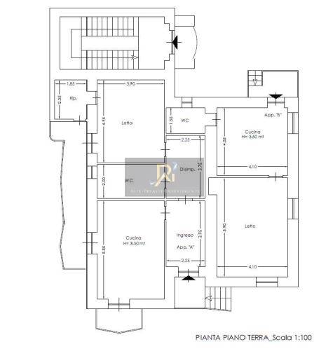 Appartamento al piano terra. L’appartamento è nello stato di fatto diviso in due unità immobiliare autonome e precisamente: 1) la prima unità immobiliare è composta da ingresso, cucina, camera da letto, bagno, disimpegno e ripostiglio; 2) la seconda unità immobiliare è composta da cucina, camera da letto e bagno.