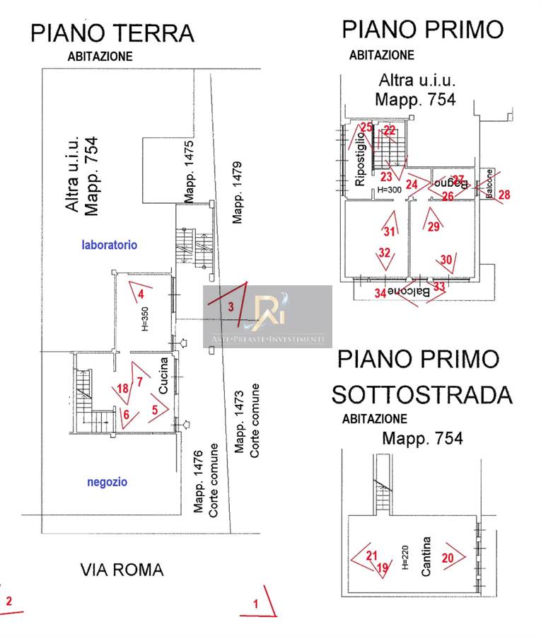 Abitazione di mq 204, composta da cucina, soggiorno, due camere da letto, bagno, ripostiglio e due balconi, collegata, anche dal punto di vista impiantistico, al laboratorio artigianale di mq. 83 (composto da un locale e servizi) e alla bottega di mq 60.