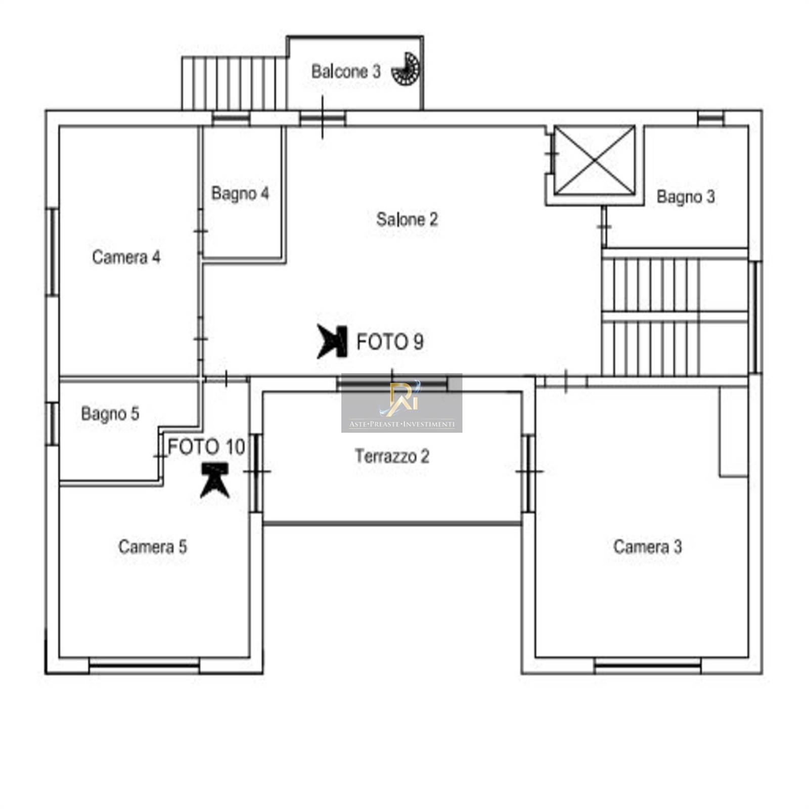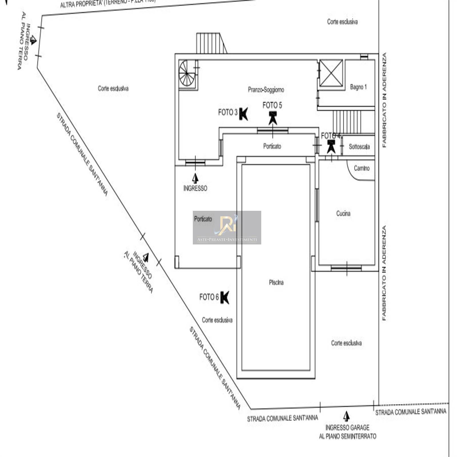 Villa unifamiliare su cinque livelli costituita da un piano seminterrato adibito a garage, un piano terra, primo, secondo, e terzo mansardato. Il piano seminterrato adibito a garage di mq 131 è collegato al piano terra mediante una scala interna a chiocciola e tramite un ascensore interno oltre a giardino. Al piano seminterrato di altezza utile interna 2,20 m, sono altresì presenti n. 2 ripostigli e un locale tecnico. Il piano terra è suddiviso in: pranzo-soggiorno, cucina con camino, bagno e vano scala con annesso sottoscala ad uso ripostiglio. Il piano primo è suddiviso in: salone, soggiorno, bagno, due camere di cui una con camino, terrazzo e due balconi. Il piano secondo è suddiviso in: salone, tre bagni, tre camere, un terrazzo e un balcone. Il piano terzo (mansarda) è suddiviso in: salone, due bagni, tre camere e tre balconi.