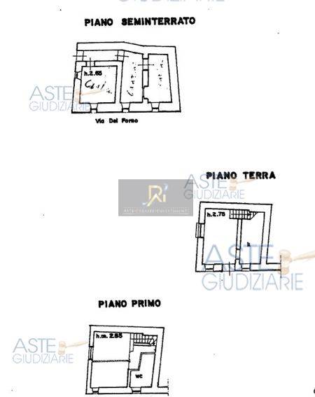 Abitazione civile su tre piani, composta da tre vani disimpegno al piano seminterrato; due vani al piano terra; due vani, disimpegno e bagno al piano primo.