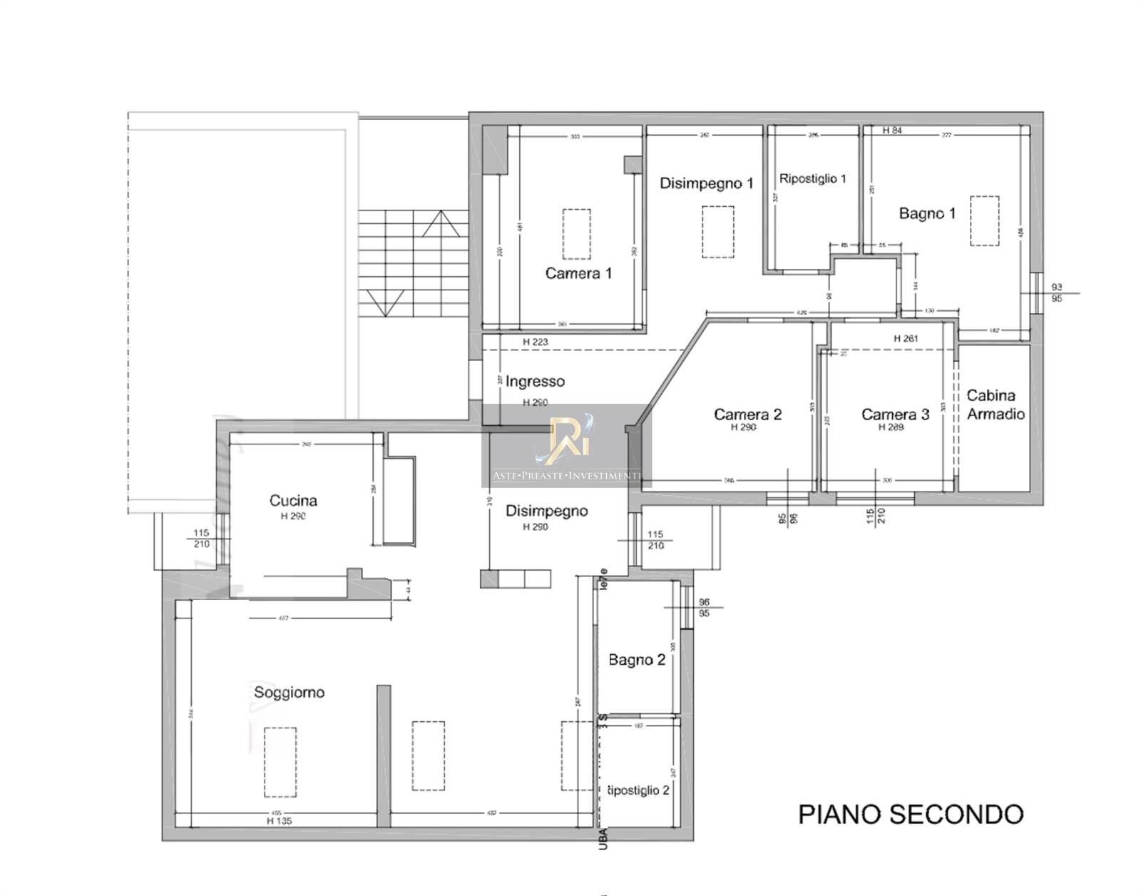 Appartamento della superficie commerciale di 212,74 mq con box. Abitazione posta al piano secondo composta da soggiorno, cucina, tre camere (di cui una con cabina armadio), due ripostigli e due disimpegni.