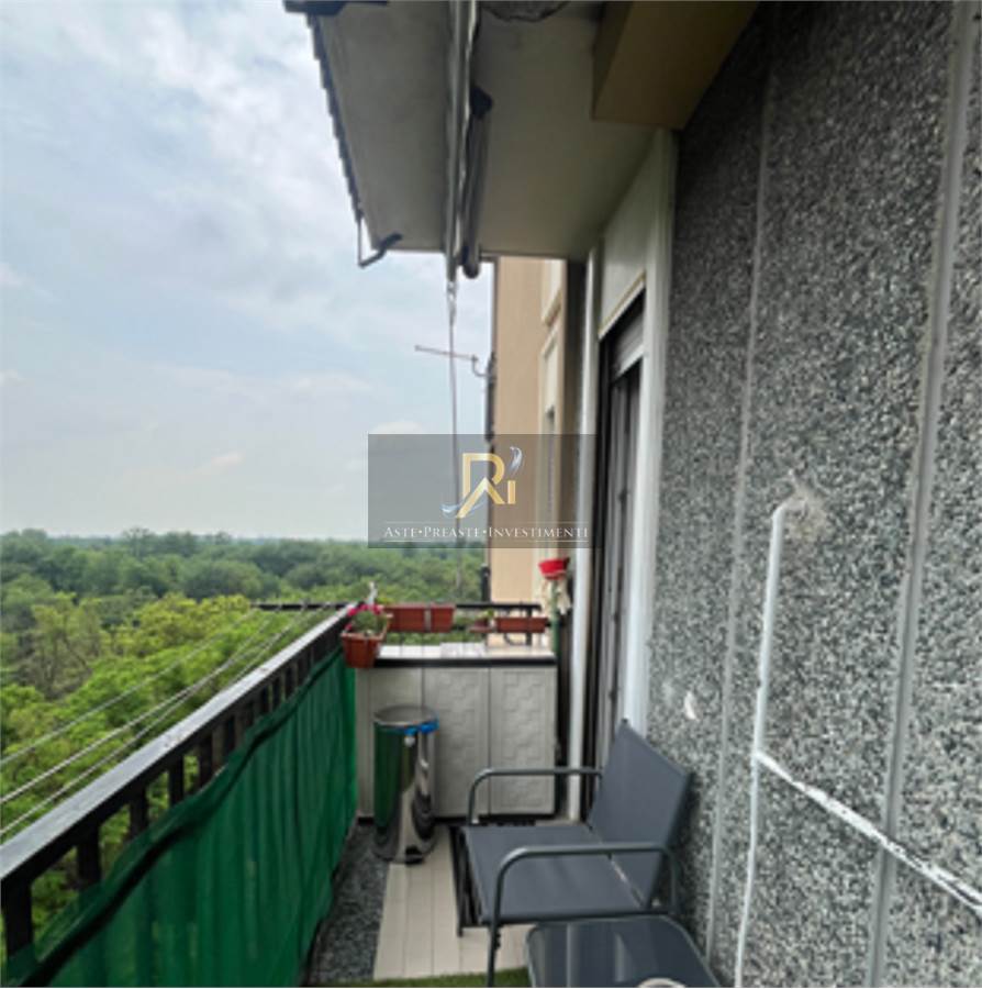 Piena proprietà di appartamento al piano quinto di circa 95 mq. Consistenza: 3 vani. Composto da ingresso/disimpegno, cucina, soggiorno, due camere, bagno, ripostiglio e due balconi. Cantina e box al piano seminterrato, superficie di 12 mq.