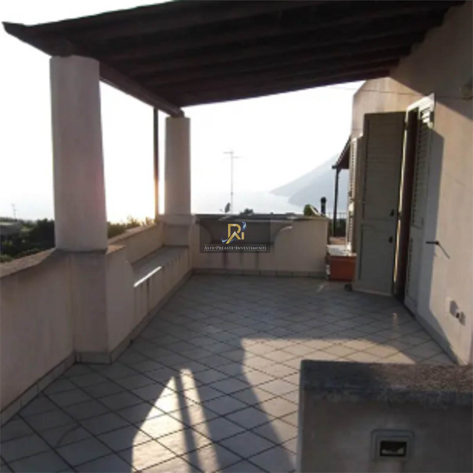 Piena proprietà di appartamento al piano primo di circa 70 mq. Consistenza: 3 vani. Composto da cucina/pranzo, camera da letto e due bagni, con ampio terrazzo in parte scoperto e in parte sovrastante tettoia ed in parte con ringhiera, area di parcheggio.