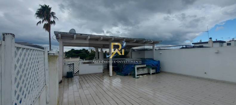 Piena proprietà di appartamento per civile abitazione sito in Manfredonia -fraz. Di Siponto- al viale Foggia snc, piano I, composto da ingresso, corridoio, cucina/ soggiorno, due camere, due bagni, spogliatoio, veranda, balcone e terrazzo; la superficie dell’appartamento, esclusi veranda, balcone e terrazzo è di mq. 86,70.All’appartamento si accede tramite scala esterna che conduce sulla veranda coperta, della superficie di mq. 6,00. Dalla veranda si accede all’immobile, composto da corridoio interno di circa mq. 7,15, bagno, di circa mq. 4,90, spogliatoio interno, di circa mq. 3,65, prima camera da letto, di circa mq. 11,05, soggiorno/cucina, di circa mq. 28,10.Camera e soggiorno affacciano su un balcone di mq. 14,35 prospicente viale Foggia.Uscendo dal soggiorno/cucina c’è una seconda camera da letto di circa mq. 11,30 e un w.c. di circa mq. 3,60. I due bagni e la seconda camera da letto affacciano tramite finestre sull’area interna condominiale. Gli infissi esterni sono in legno con doppio vetro protetti da persiane sempre in legno, come in legno sono quelli interni. Le pareti sono rifinite con pittura di colore chiaro o carta da parati mentre le pareti dei bagni sono rivestite in gres fino ad una certa altezza (tipo boiserie); i pavimenti sono di colore chiaro in laminato. L’immobile è dotato di impianto idrico sanitario ed elettrico, realizzati sottotraccia e di riscaldamento/raffrescamento canalizzato autonomo. Ha un’altezza utile di circa m. 3,23 Sulla veranda che da accesso all’appartamento è ubicata una scala a chiocciola che conduce al terrazzo sovrastante di proprietà esclusiva, di circa mq. 80.70, di cui circa mq. 30 coperti da tettoia in legno. Ove autorizzato dal G.E., sarà stipulato un contratto di occupazione temporanea con clausola risolutiva espressa al verificarsi dell’aggiudicazione dei beni.