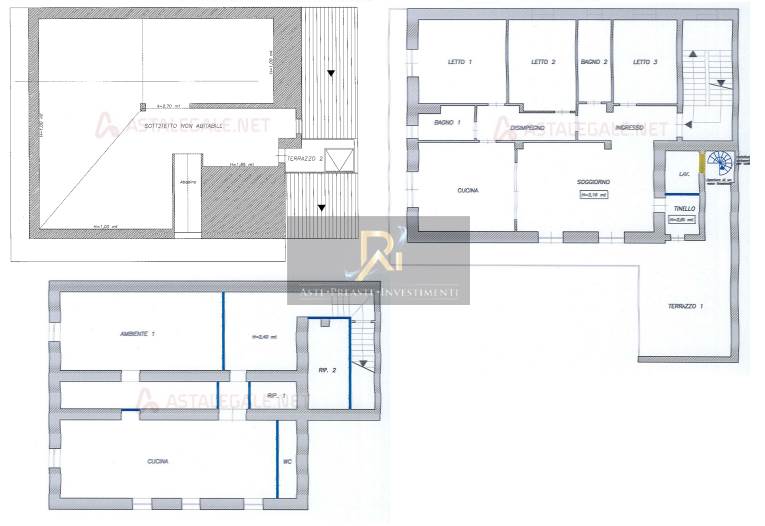 non abitabile mediante una scala a chiocciola. Il piano seminterrato è adibito in parte a
