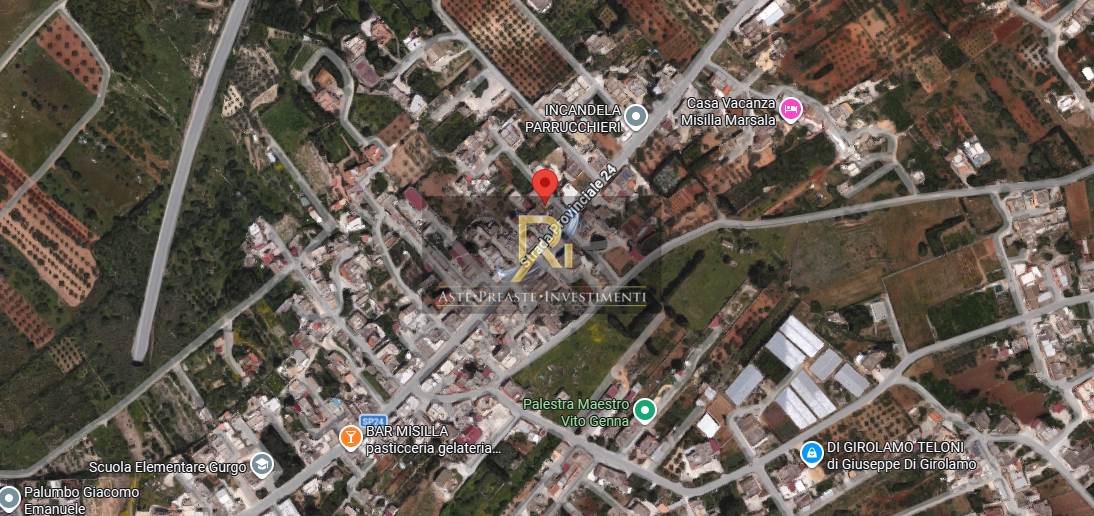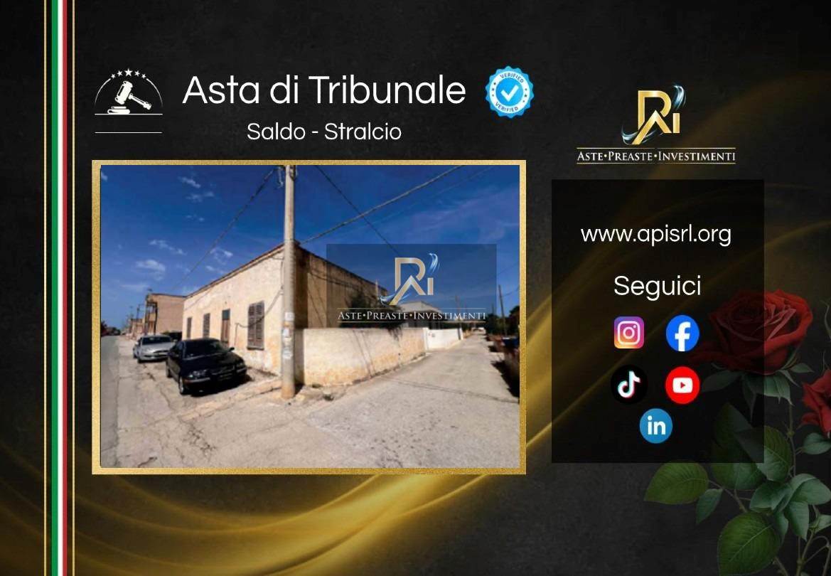 Piena proprietà di un fabbricato ad uso civile sito in Marsala, S.P. 24 c/da Gurgo n. 328, p.t., ad un’unica elevazione fuori terra con struttura in muratura portante e copertura piana, consistenza 5 vani, superficie catastale 109 mq. Fa parte della dotazione accessoria dell’unità immobiliare lo spazio cortilizio intorno al fabbricato, oltre ad una porzione di rispetto prospiciente la strada provinciale. L'immobile è composto da cucina, bagno, disimpegno e tre camere.