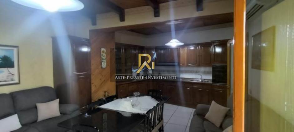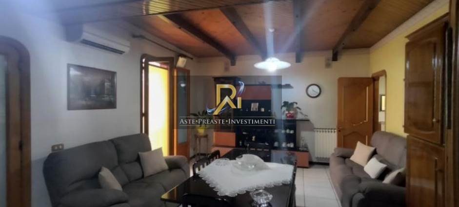 Piena proprietà di appartamento al piano primo di circa 203,28 mq. Consistenza: 8,5 vani. Composto da disimpegno, salone, cucina/pranzo, soggiorno, tre camere, due bagni, pozzo luce, terrazzo e balcone. Al piano terra autorimessa di superficie pari a 243,21 mq e giardino di circa 245 mq.
