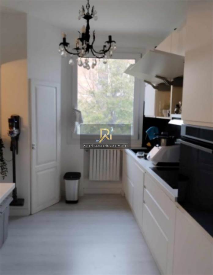 Appartamento con ingresso al piano terra, appartamento al piano primo e piano sotto tetto, area esterna, box auto e posto auto. La distribuzione dei locali all’interno dell’unità abitativa (primo piano) comprende ingresso su disimpegno centrale e locale cucina; dal disimpegno è possibile accedere alla zona giorno comprendente un locale ad uso studio, cucina, pranzo-soggiorno; la zona notte è costituita da due camere da letto e un bagno centrale.