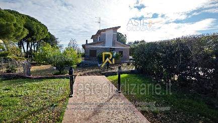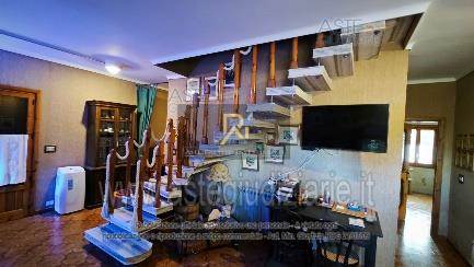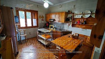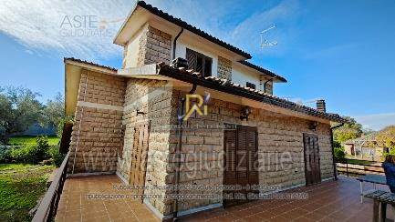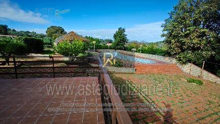 Piena proprietà di villa al piano terra e primo di circa 201 mq. Consistenza: 9 vani. Composto da ingresso/salotto con vano scala, sala da pranzo con scala a chiocciola che conduce al piano inferiore, ripostiglio, bagno, cucina, camera e tettoia esterna al piano terra. Al piano primo sono ubicati disimpegno con vano scala, bagno e due camere. Al piano seminterrato sono presenti la cantina, bagno e locale tecnico. Garage al piano terra, superficie di 15 mq. Terreno di pertinenza, superficie di 8.644 mq.