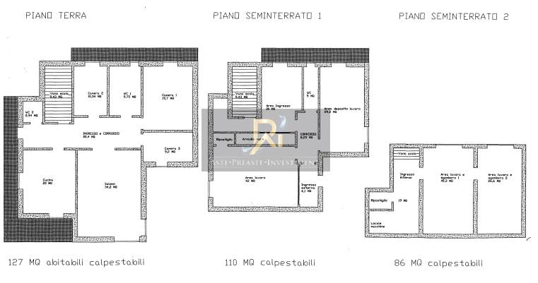 Fabbricato utilizzato come abitazione indipendente su più livelli con corte esclusiva ed accesso indipendente; sostanzialmente trattasi di villa indipendente su più livelli e con terreno circostante, costituita da n. 3 unità immobiliari: 1) consistenza 8 vani; 2) consistenza mq 113; 3) categoria C/2, consistenza mq 77. L'immobile è composto al piano terra da ingresso/corridoio, cucina, salone, due bagni, tre camere. Al piano seminterrato 1 sono presenti area ingresso, corridoio, ripostiglio, bagno, due aree lavoro e ingresso esterno. Al piano seminterrato 2 sono ubicati ingresso, ripostiglio, locale macchine e due locali sgombero.