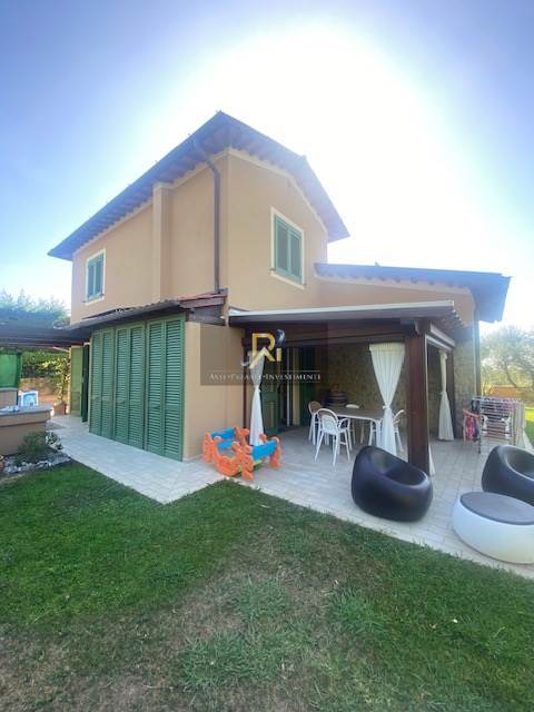 La villetta, di tipologia residenziale unifamiliare, è composta al piano terra da ingresso-soggiorno con doppio volume, zona pranzo, cucina, ripostiglio, studio, disimpegno, servizio igienico, locali tecnici posti sul lato nord, oltre pergolato sul lato nord/ovest e porticato sul lato sud/ovest. Il piano primo comprende tre camere da letto, disimpegno, servizio igienico e soppalco affacciato sul soggiorno. L’unità è corredata da terreno esclusivo ad uso giardino e parcheggio sui quattro lati, con accesso diretto dalla Via San Giuseppe n. 14/B.