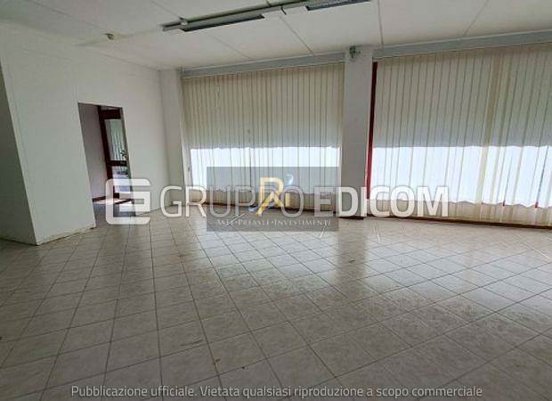 Immobile del tipo commerciale direzionale su due livelli fuori terra. Dal punto di vista strutturale pare che il fabbricato sia costituito da due corpi di fabbrica, uno di vecchio impianto e un corpo in ampliamento. Dal magazzino si accede da un vano con due livelli sfalsati destinato a deposito/autorimessa.