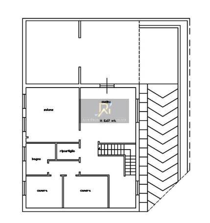 Villino su due livelli, uno a piano rialzato ove si trovano: un salone, tre camere, un bagno e un ripostiglio e un piano seminterrato ove si trovano: cucina, salone, bagno e due camere e un locale deposito/box, oltre locale sottotetto e spazio esterno.