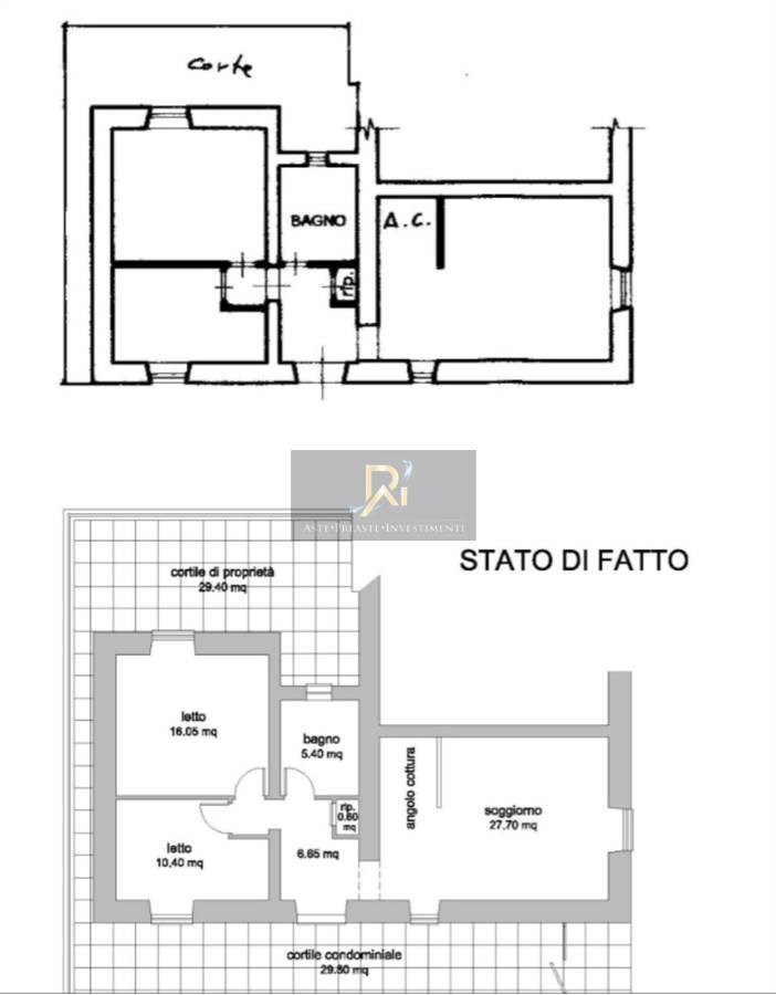 Appartamento su un unico livello, composto da un ingresso, soggiorno con angolo cottura, piccolo ripostiglio, bagno e due camere da letto. completa la proprietà un cortile esterno, in parte di uso condominiale e in parte di proprietà esclusiva, con una superficie netta di 29,40 mq.