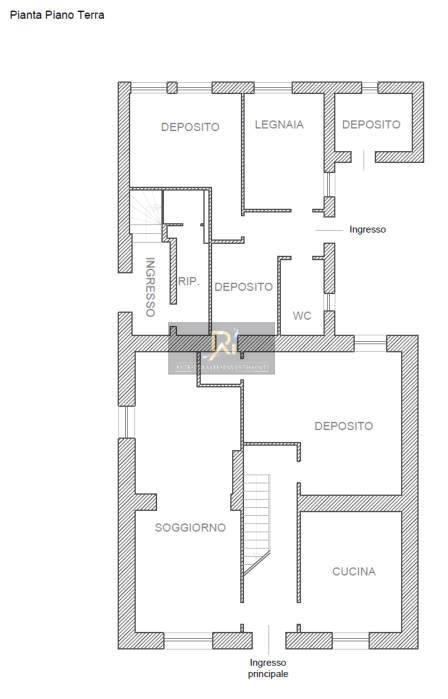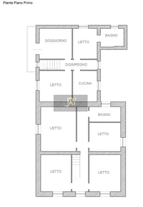 Immobile su due livelli composto da soggiorno, cucina, bagno e depositi al piano terra, da soggiorno, cucina, quattro camere e bagno al piano primo.