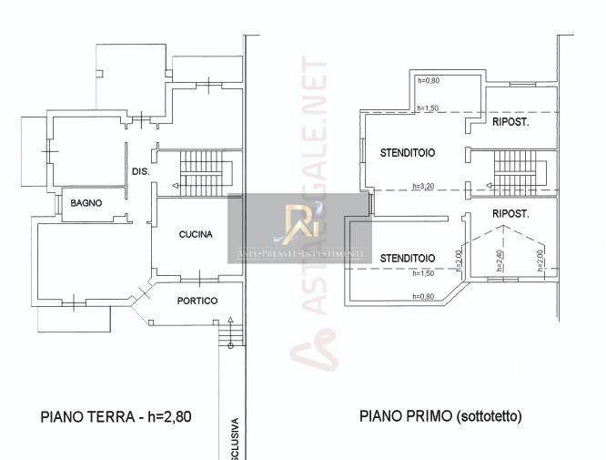 Appartamento al piano terra/rialzato suddiviso in due appartamenti oltre sottotetto composto da ingresso/soggiorno, due camere, cucina, locale igienico, disimpegno e ripostiglio (quella con fronte su Via Colombo) e di soggiorno con angolo cottura, camera matrimoniale, cameretta e locale igienico (quella con accesso dal retro del fabbricato). Il sottotetto si compone di ampio ingresso attualmente destinato a soggiorno e sala, vano utilizzato a camera matrimoniale, due camerette, bagno, ripostiglio e disimpegno.