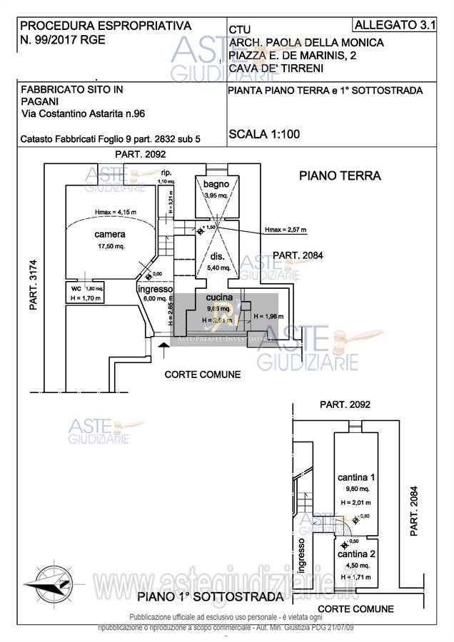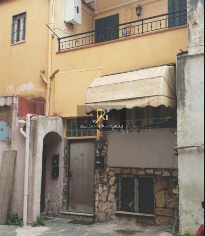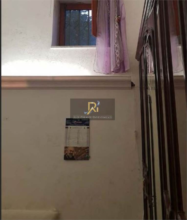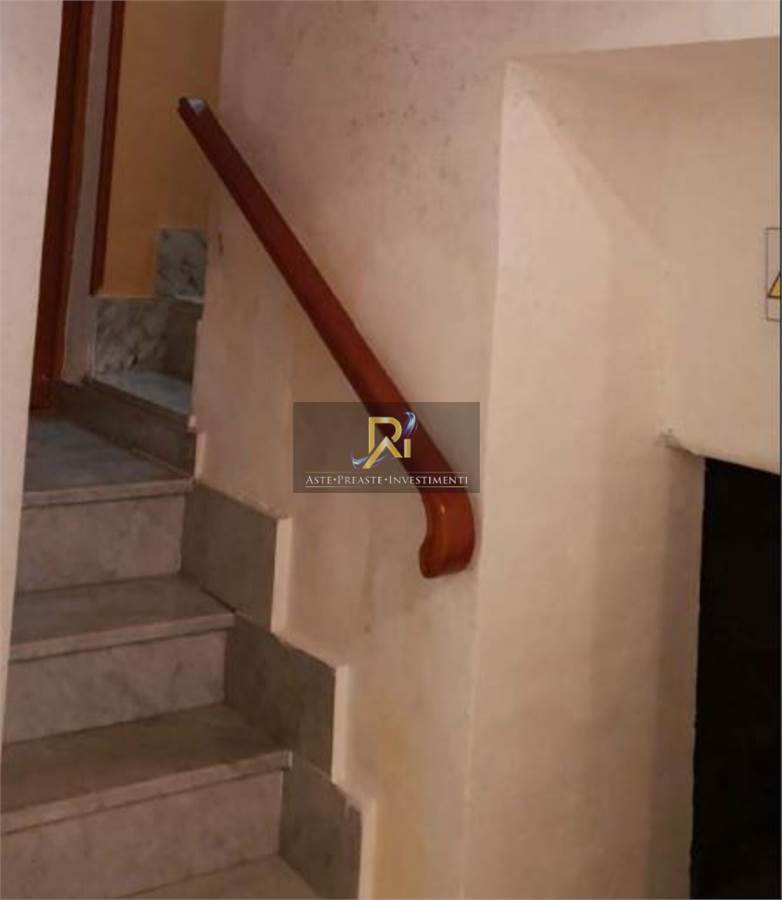 Appartamento distribuito su due piani di un fabbricato a corte, composto da n. 2 vani ed accessori. Al piano terra ingresso di mq. 6,00, camera da letto di mq. 17,50, wc di mq. 1,80, ripostiglio di mq. 1,10, disimpegno di mq. 5,40, cucina di mq. 9,65 ed un bagno di mq. 3,95; al primo piano sotto strada ci sono 2 piccoli locali cantina di mq. 9,60 e mq. 4,50.