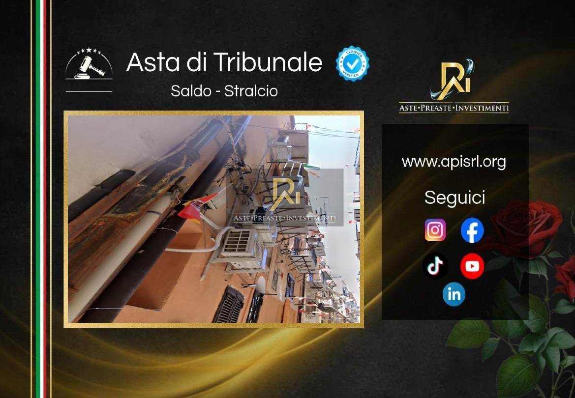 Piena proprietà dell’immobile sito in Palermo, Vicolo Maestro Cristofaro n. 6, piano 2, consistenza 4,5 vani, superficie 69 mq. Composto da soggiorno con angolo cottura, bagno, camera e due balconi.