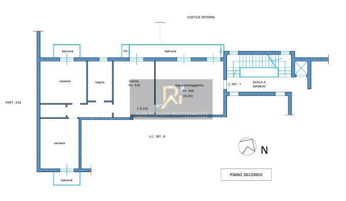 Appartamento al piano rialzato composto da 3 ambienti e 2 servizi igienici, oltre a balcone e terrazzo a livello (da cui si accede); ubicato in un edificio a corte, con antistante cortile pertinenziale e con annesso locale cantina al piano seminterrato